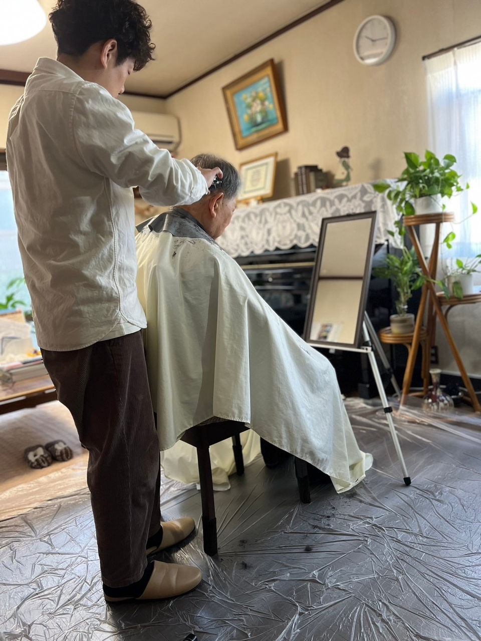 東口です。訪問理美容の仕事では、お客様に合わせ、安全で手際よく意識して仕事をさせてもらっています。お客様のカットに対する不安や髪についての悩みなんでもご相談ください。